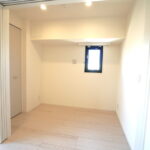 寝室は、ウォークインクローゼットと建物の大きな柱を挟んでいるおかげで、隣室との接面が極端に少ない角部屋構造になっている。